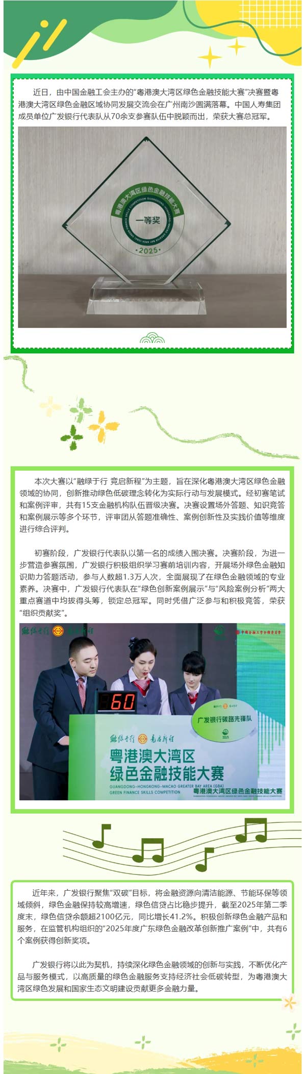 廣發(fā)銀行榮獲粵港澳大灣區(qū)綠色金融技能大賽總冠軍